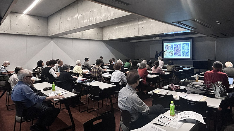 シリーズの第1回と第2回は、人間の健康と病について、お話がありました。第3回と第4回は、ちょっと趣を変えて、人ではなく、絵と書の「病」についてのお話です。今回の講師である太田孝彦先生は、室町時代に、中国の水墨画がどのように受容されたかについて研究されてきましたが、このようなことは、中国、朝鮮、日本という東アジア全体の美術を視野に入れなければ可能ではありません。案の定、お話は、日本の雪舟にはじまり、中国の唐代から宋代にかけての水墨山水画の展開(荊浩、関同、范寛、李成、郭熙)を踏まえ、改めて雪舟に戻って、長谷川等伯や狩野派の「日本的特質」とでも呼ぶべきものに言及するもので、まさに壮大な物語でした。たくさんのスライドを準備していただき、もっと時間があったら、ゆっくりお話を聞けるのに、と感じたのは私だけではないでしょう。以下、太田先生ご自身に、ご報告をお願いしました。じっくり理解したいものです。(K)