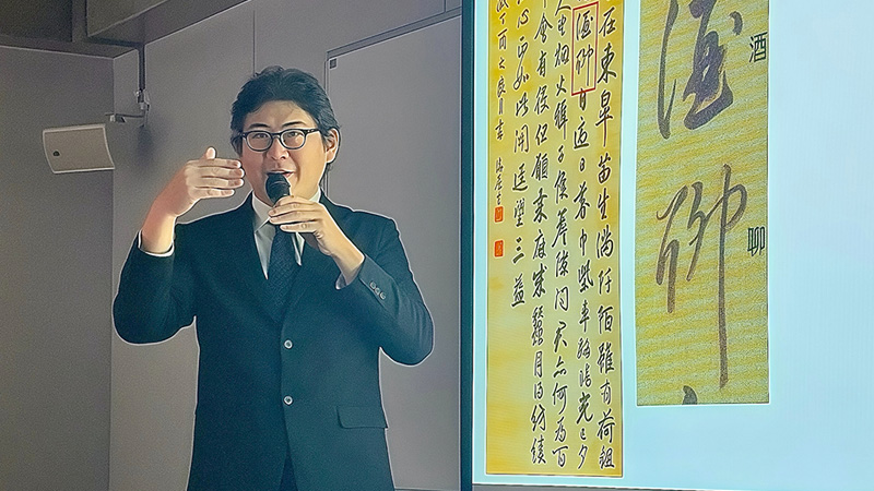 今回の講演では、まず「点画における「病」のかたち」と題し、「八病」を紹介しました。次に「文字に見る「骨」と「肉」」と題し、文字を人体に譬えてどのように語られ、またどのように形作られるかを述べました。最後に「書における永遠の「健康」」と題し、理想像としての王羲之についてご説明しました。